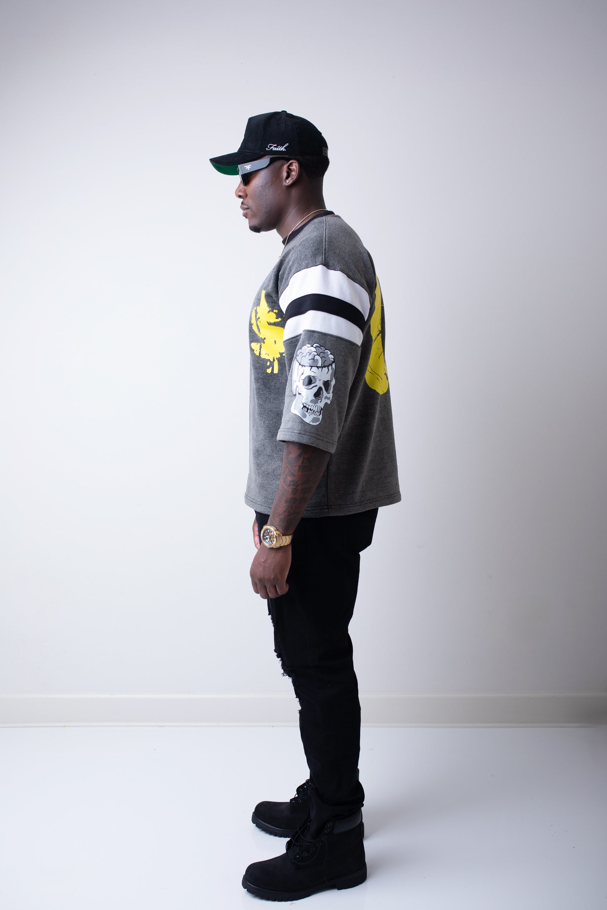 Model is 5’10, wearing size Large. Crowned GM$ logo and sleeve skulls speak to the bold spirit behind the Legacy Collection. A fearless fit with purpose stitched into every detail.